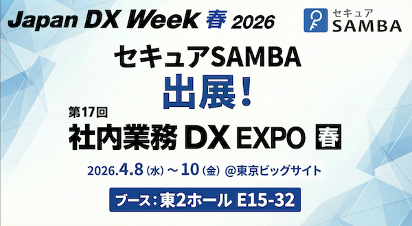 当日は「セキュアSAMBA」のデモ画面を交えたご紹介のほか、個別相談も承っております。「ファイル管理・共有をもっと楽に、安全にしたい」とお考えでしたら、ぜひ弊社ブースへお気軽にお立ち寄りください。